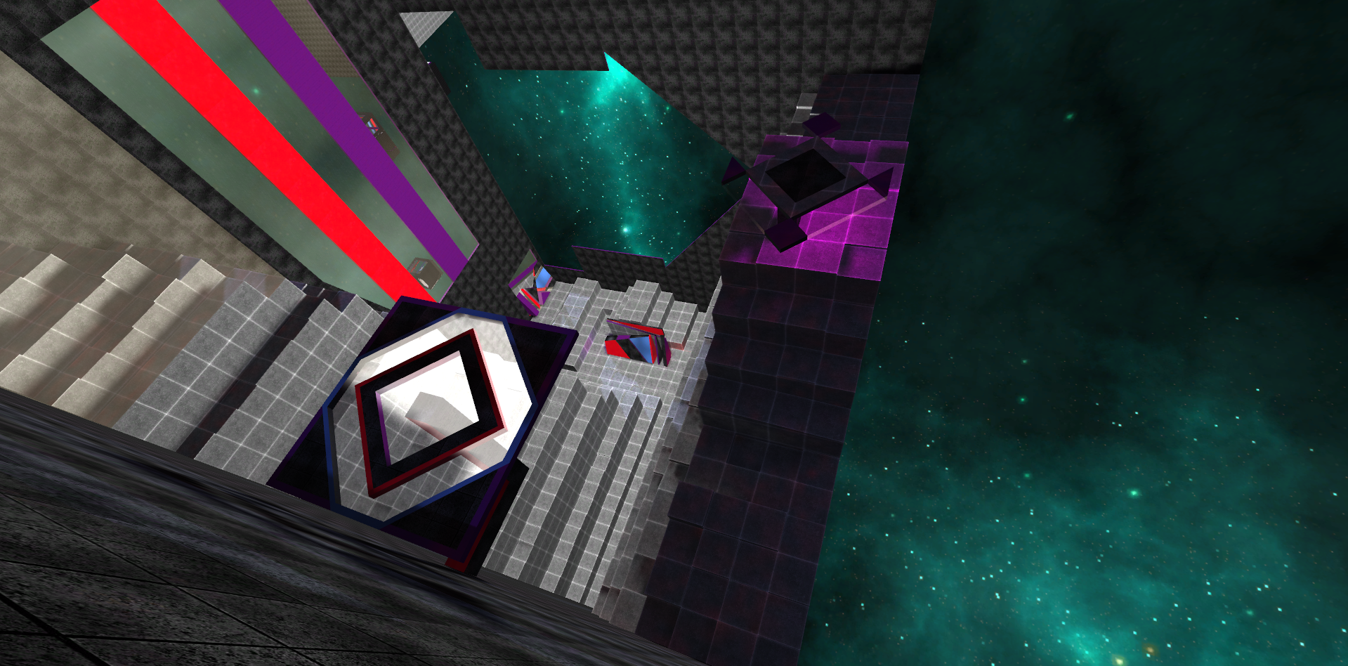 One last thing is that the map has absolutely NO scripts. So no teleporters, no welcome or finishing messages. Nothing. The ways themselves are distinguished by color pretty much like the original mp_spirits.